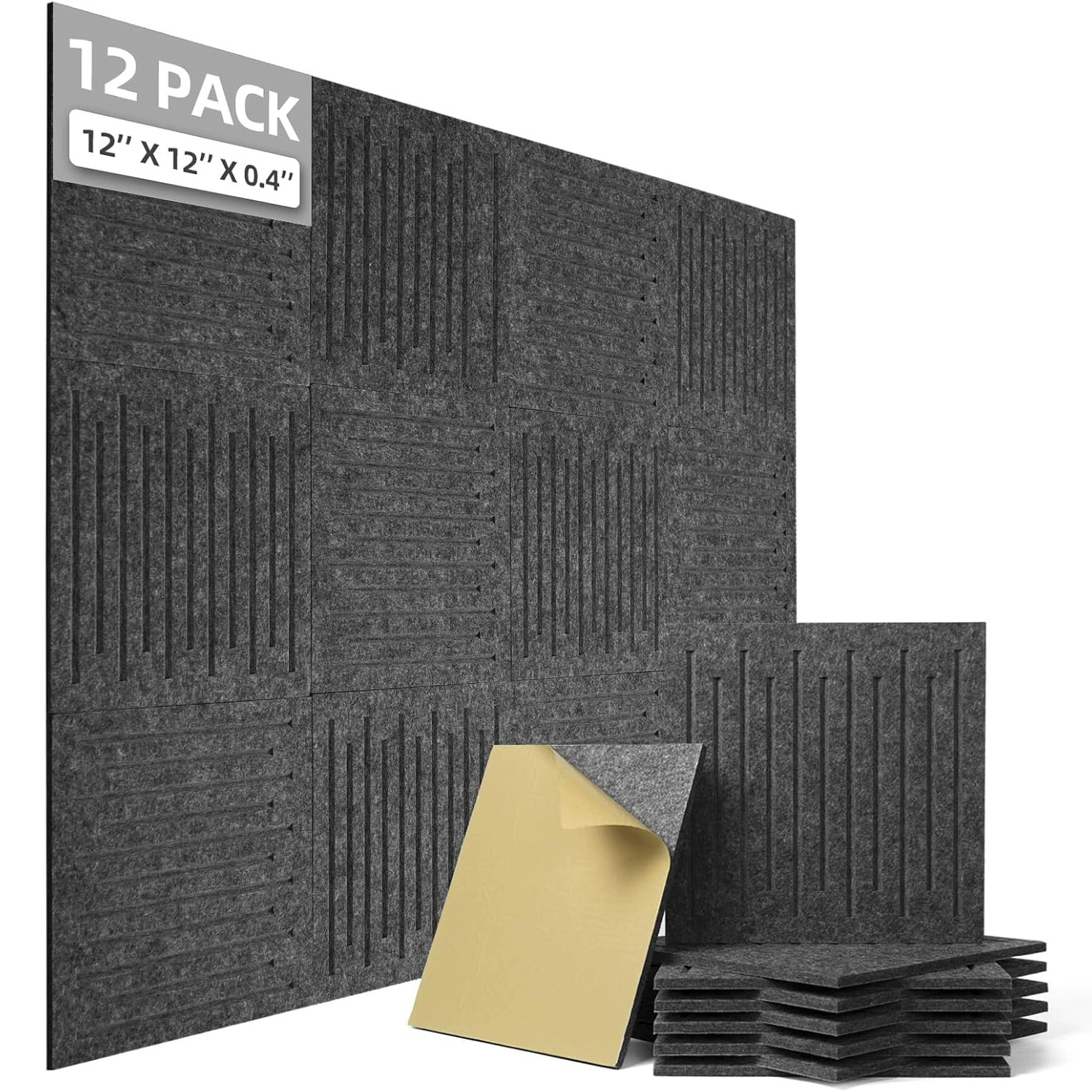 Polyester Acoustic Panels Sound Absorbing Self-Adhesive, Acoustic Wall Panels 12 Pack Wall Decoration Soundproof Wall Panels High-Density Sound Proofing Panels Tiles For Walls 30 X 30 X 0.9cm (12" X 12" X 0.4")