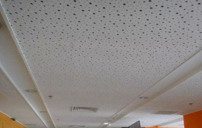 Perforated gypsum sound-absorbing board has cylindrical holes through the front and back of the gypsum board, and is made by pasting the back cover material with air permeability and sound-absorbing material that can absorb the incident sound energy on the back of the gypsum board. The mechanism of sound absorption is that there are a large number of tiny connected pores inside the material, and the sound wave along these pores can penetrate into the inside of the material, and the friction effect of the material will transform the sound energy into heat energy.